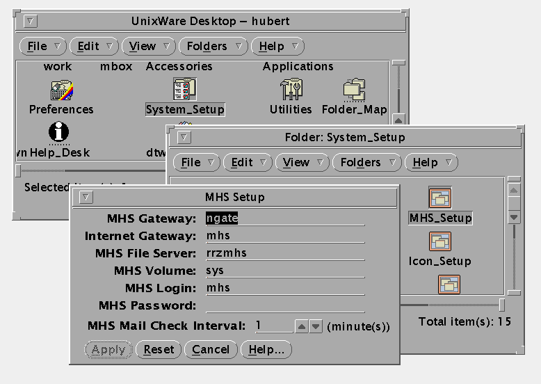 Durch einen Doppelklick auf das Icon ist das Selektor-Programm aufzurufen. Es folgt ein Fenster, das eine Liste der verfügbaren Mailsystem-Treiber enthält. Davon ist der Eintrag "Novell MHS Mail" mit einem Doppelklick auszuwählen, dadurch wird dieser in das "current"-Feld übernommen. Danach kann das Programm verlassen werden. Diese Prozedur muß durchgeführt werden, denn sonst bleibt der vorherige Treiber für MS-Mail aktiv.