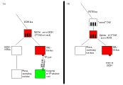 Ethernet (Image #2a) usually acts as a broadcast medium and PPP (Image #2b) is designed for bit-sequential media. Because of this difference, a facility is needed to encapsulate PPP-frames in ethernet frames and to forward packets between the ethernet- and PPP-layer. That facility is depcited as the green line connecting ethernet and PPP in Image 2c. The 'mouse-pppoe' program can be used for that, it's available as pkgsrc/net/mouse-pppoe in the NetBSD Packages Collection; An alternative program (not described here) is in pkgsrc/net/rp-pppoe. They access the ethernet layer by hooking in via the BPF interface, and provide a pty-interface for the PPP daemon (pppd) to connect to.